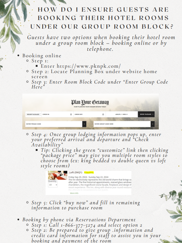 You may also use the below information to call in or use the site's planning tool. Room Block code is 'SBPET' if you will have a pet/dog in the room or
